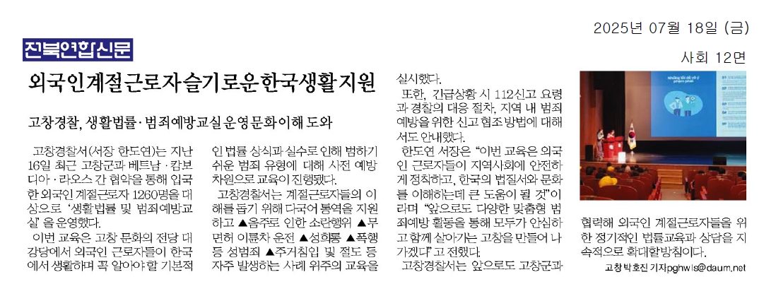 - 250718외국인계절근로자슬기로운한국생활지원.jpg 다운로드미리보기 알림마당 > 홍보자료 > 시군경찰서소식창