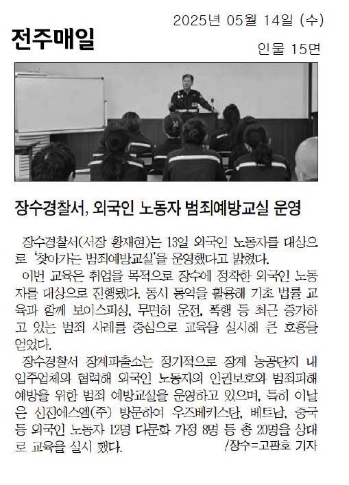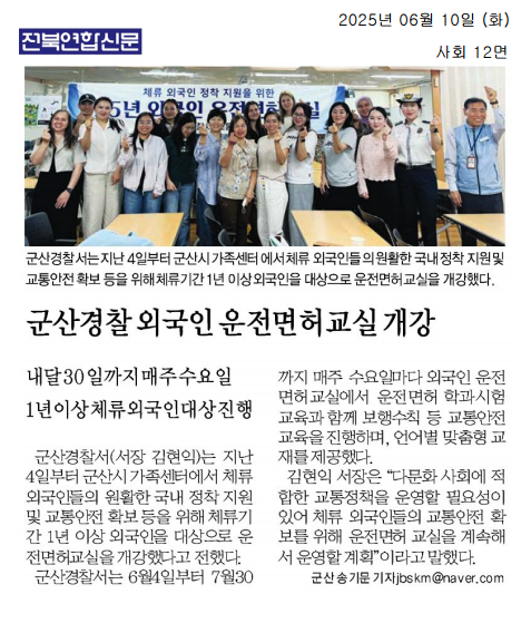 - 6.10.전북연합신문(군산경찰외국인운전면허교실개강).PNG 다운로드미리보기 알림마당 > 홍보자료 > 시군경찰서소식창