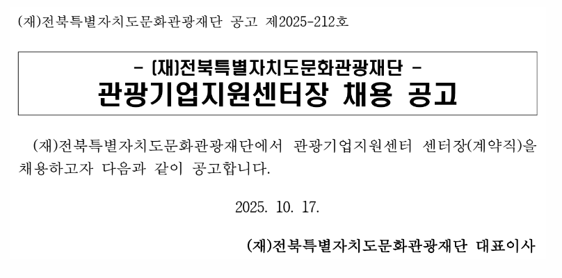 - 251031공고문(원장).pdf 다운로드미리보기 전북소식 > 시험채용 > 타기관시험 및 임용정보 > 시험공고 및 안내