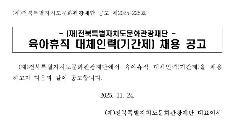 - 2026년 산림환경연구원 산림박물관 구내식당 조리원(단시간 근로자) 기간제근로자 채용 공고.hwpx 다운로드미리보기 전북소식 > 시험채용 > 기간제근로자 임용시험 > 시험공고 및 안내