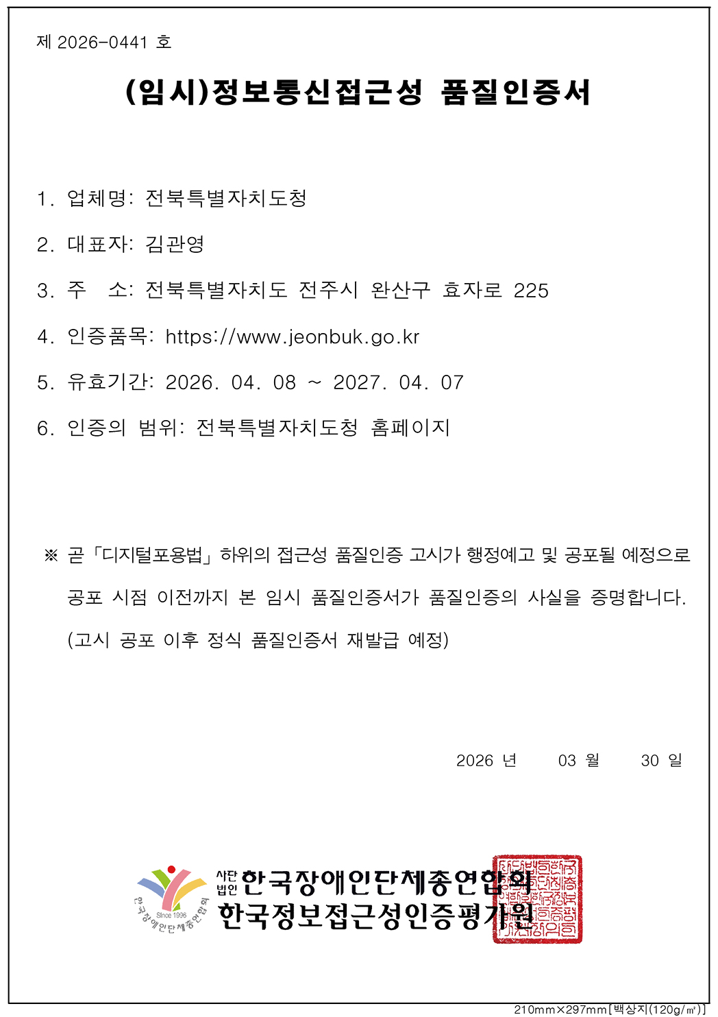 6. 인증의 범위 : 전북특별자치도청 홈페이지